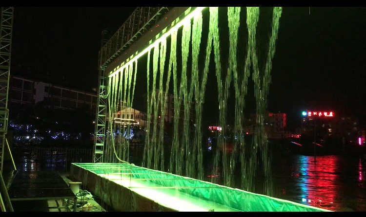 将数字水幕设备采纳倒挂的方式置脱离水面高度在3--12米间,能通过水的自由落体拼成您想要的任意文字和图像